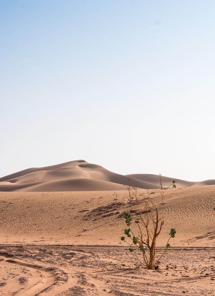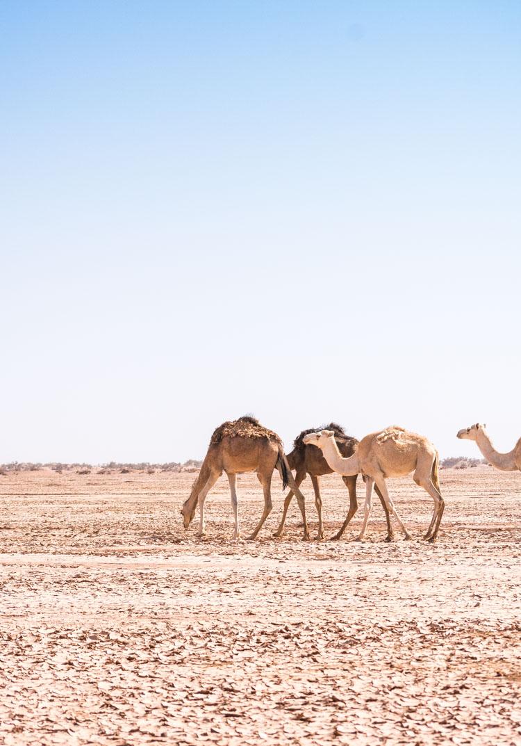 A medida que desaparece la “civilización”, nos acercamos cada vez más a la puerta del desierto. En M’hamid el gizlane, la última parada con carretera como tal, se acaba todo pavimento. Esta es una pequeña ciudad a las orillas del río Draa, y el último asentamiento antes de adentrarse en las dunas. De aquí en adelante la ruta desaparece por completo y no queda más que soltar el cuerpo para acompañar el subibaja de las dunas, acompañando el movimiento de la 4×4. No ha pasado ni media hora, y comenzamos a ver dromedarios silvestres, tranquilamente pastando una que otra hierba entre la tierra craquelada por el sol.