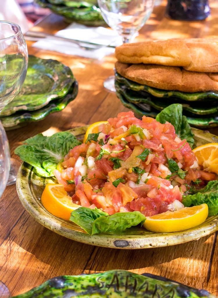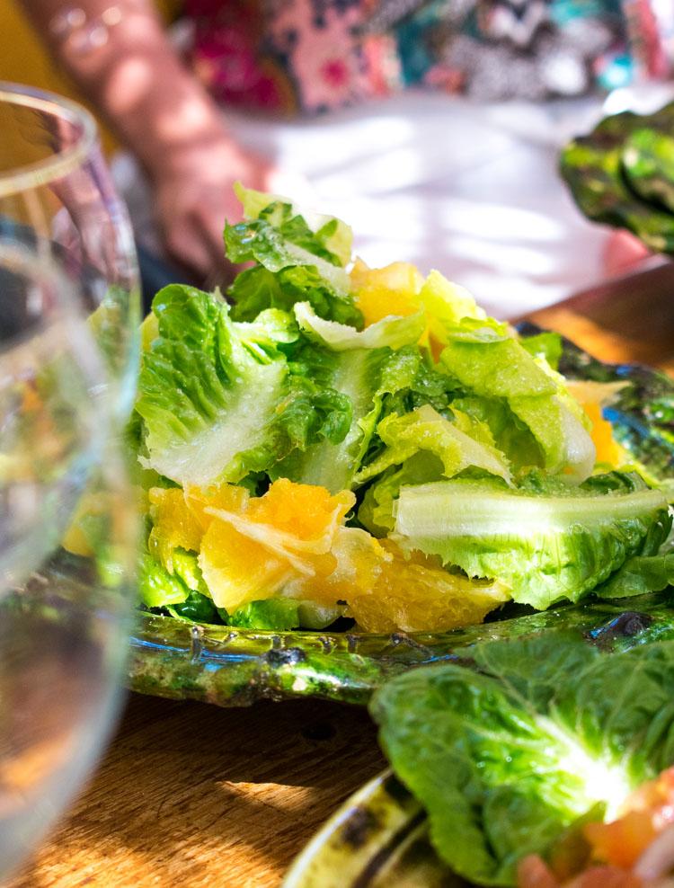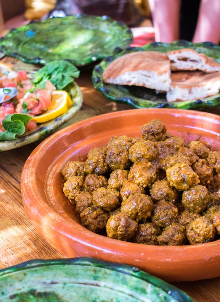 La última parada desértica es en Zagora, dónde nos despedimos con un festín de ensaladas, que curiosamente al borde del desierto son mucho más frescas que en el norte de Marruecos: lechugas frescas con rodajas de naranja y azúcar espolvoreada por encima, jitomates rebanados finamente con cebollas y bañados en limón y aceite de oliva. Para terminar una deliciosa kefta tagine, de albóndigas. De postre un clásico marroquí: rodajas de naranja a la canela con agua de flor de naranjo.
