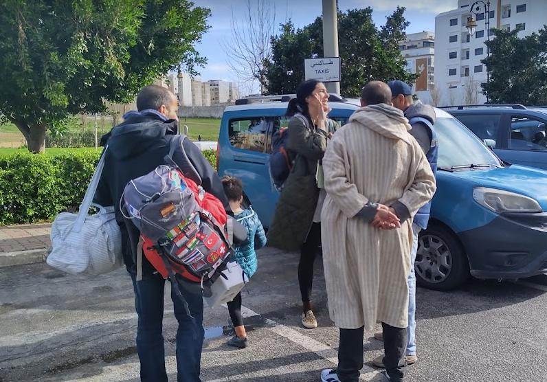 Fuimos a casa, recogimos las mochilas y directos a la estación de grand taxis, teníamos que viajar dos horas hasta el aeropuerto de nador, era un trayecto raro y nos costó cada taxi 500 dirhams, no teníamos opción, así que sucumbimos al precio que nos pedían. El trayecto fue guay, esta vez los peques con los papas y nosotras en el taxi Mercedes blanco de antaño.