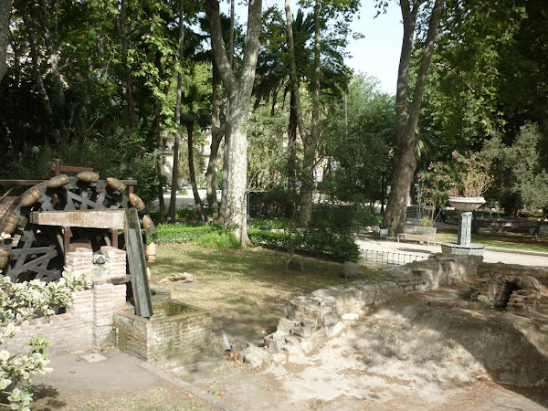 Los restos de las murallas están junto al parque principal de Algeciras, el Parque de María Cristina. Yo digo que éste parque es la niña mimada porque lo tienen siempre muy cuidado, no permiten perros, en verano ofrecen allí recitales de música de cantantes famosos y no tan famosos, algunas cofradías entran allí en Semana Santa. Dentro se encuentra la reproducción de una noria musulmana que llevaba el agua hacia los baños o hamman.