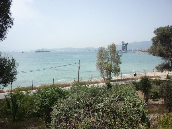 Allí mismo en la bahía, aunque un pelín lejos para ir andando por la playa está la refinería de Cepsa y el yacimiento arqueológico Romano Carteia.