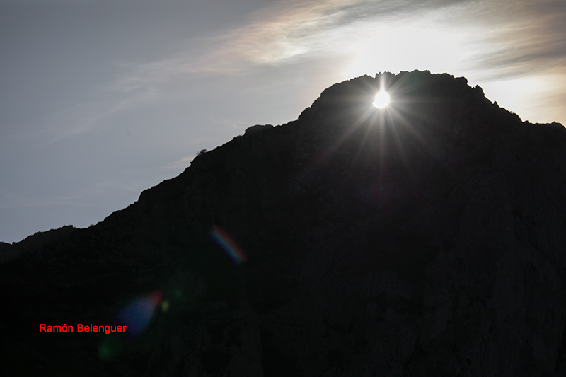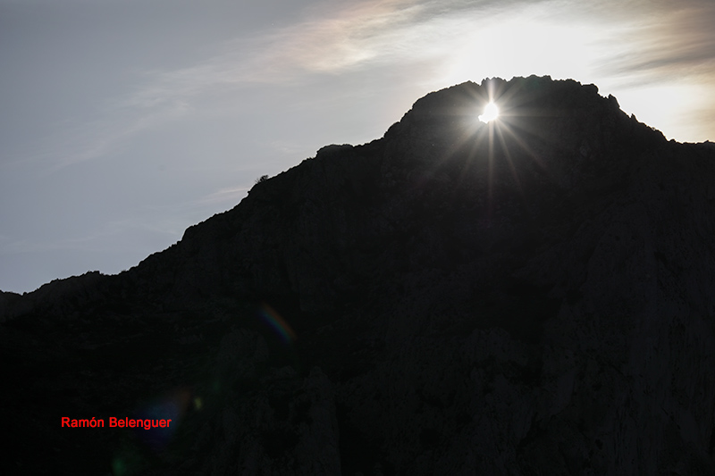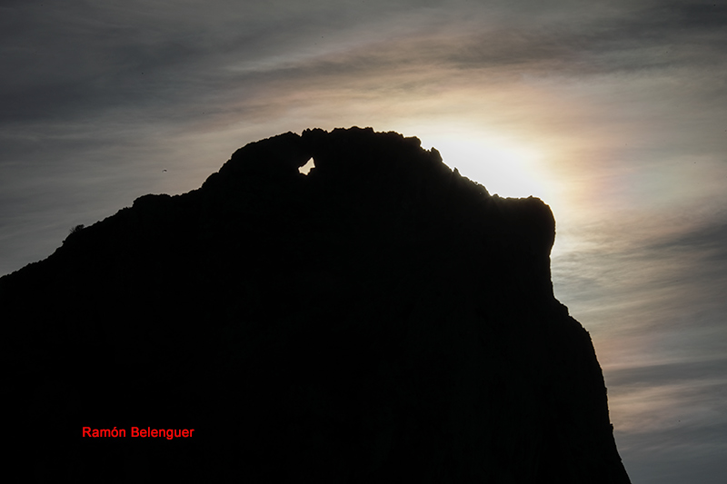 La Peña Foradada dispone de un arco de piedra natural de unos 3,5 m de altura que se puede observar desde diferentes puntos del valle, y a través de él dos días al año, el 4 de octubre (a las 16h 20m hora local) y el 9 de marzo (a las 17h 42m hora local), los rayos del sol pasan por el agujero, estos datos fueron calculados por José Lull con operaciones de trigonometría esférica. Estos días varían de año en año, lo que se refleja en un pequeño desfase de unos días, según el año. A consecuencia de las dimensiones de la Foradà hay un alto grado de focalización en la alineación, por lo que el fenómeno dura un poco menos de dos minutos
