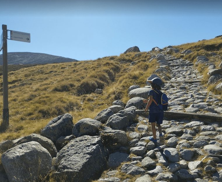El ascenso no es tecnicamente difícil hasta el tramo superior pero con un niño de 5 años debes ir despacio.