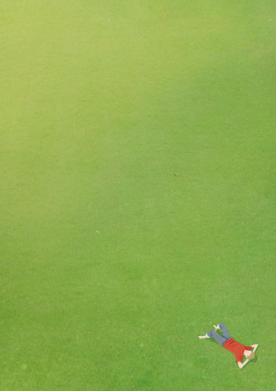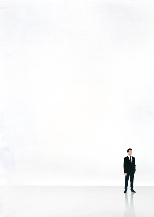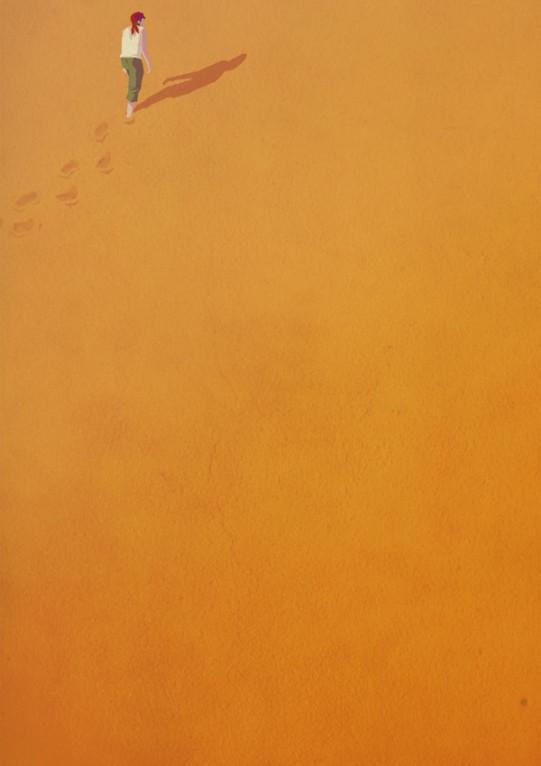 Sobre un espacio único de color, este diseñador gráfico coloca a cada protagonista en un punto estratégico del lienzo y dentro de varios escenarios diferentes; sumergidos en una piscina, tumbados sobre la hierba, andado por el desierto o perdidos en la nieve, lugares tanto interiores como exteriores pero sin ninguna otra referencia visual. No podemos adivinar si están en un lugar público dentro de una gran urbe o en medio del campo, si están realmente solos o con alguien alrededor, esta percepción intensifica todavía más la sensación de soledad y aislamiento que quiere transmitir el artista. Juzgad vosotros mismos…