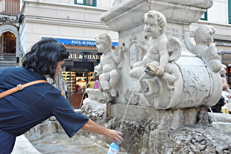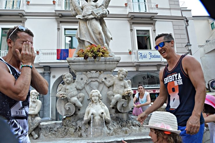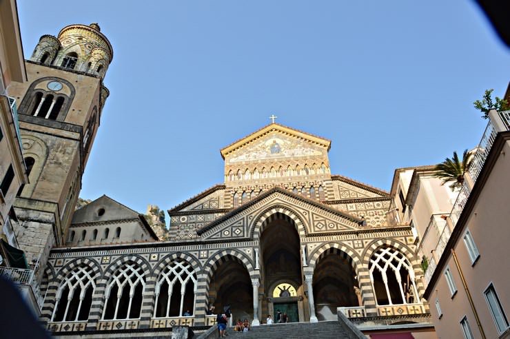 Según empezábamos nuestro paseo por la zona, se descubría ante nosotros una peculiar iglesia, que además de bonita era enorme y preciosa. Esta iglesia preside la plaza de Amalfi donde encontrarás un montón de simpáticas y peculiares fuentes, además también hay muchos restaurantes, tiendas de souvenirs donde destacan sus famosos limones y subiendo a lo alto, unas preciosas vistas.