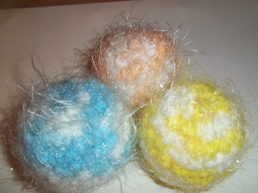 (bolitas de lana peluda tejidas con aguja del nº 4,5)
