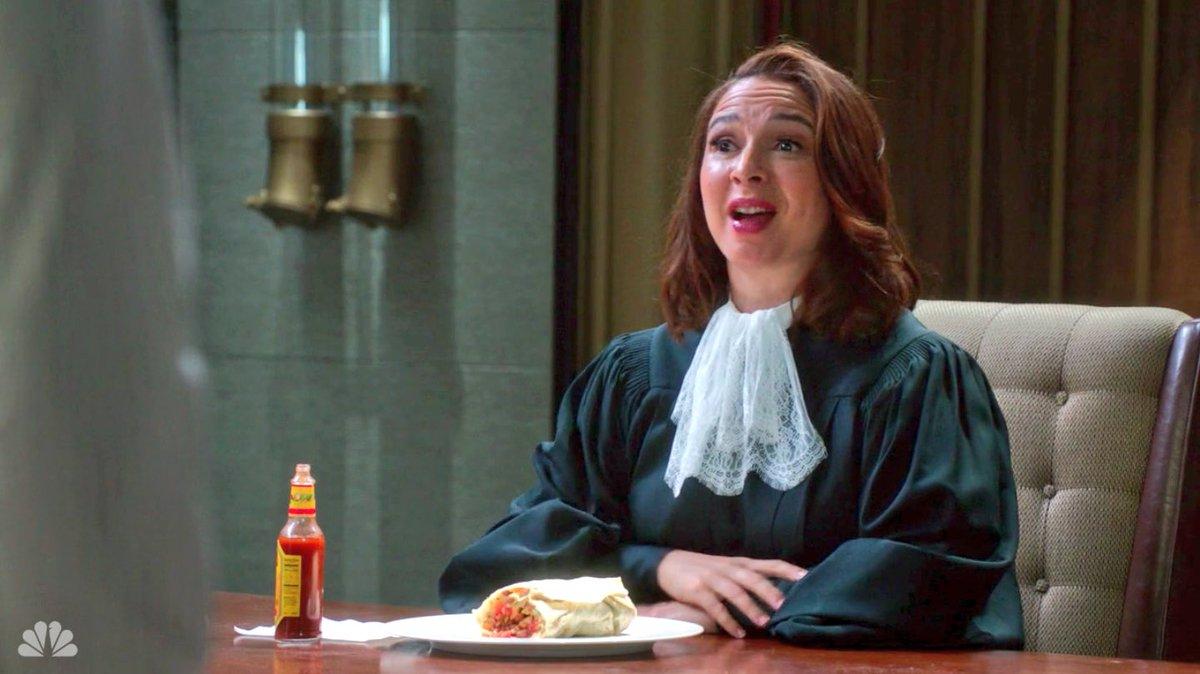 “The Burrito” juega a las virtudes de Rudolph como actriz cómica. La juez Gen tiene una sensibilidad divertida e informal para un ser todopoderoso; y Rudolph imbuye a cada línea de un carisma relajado. Ya sea que esté comentando lo obsesionada que está con el acento de Tahani.