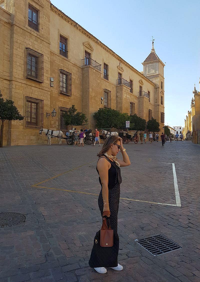 Ya el último día, fuimos a Córdoba, y puedo decir que también fue una ciuadad muy hermosa como Sevilla. Quiero empezar a mostrar cada parte que visité, de acuerdo a nuestro recorrido. Para este día elegí un mono negro con puntitos, y deportivas.