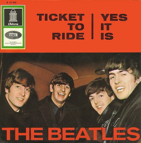 1.- TICKET TO RIDE (The Beatles).- Otro single de los Beatles en llegar al medio siglo de vida. Desde el 2013 y hasta el 2020, las Bodas de Oro de temas y álbumes de los Beatles estarán a la orden del día en "ROYAL TRILOGY", y en esta sección musical. Al igual que muchos temas de los Beatles, escuché por primera vez esta canción en 1981, después del asesinato de John Lennon, y en un principio, como que no me llenaba mucho, sobre todo, si había otros temas que me gustaban mucho más. Sinceramente no le dí mucha bola a la canción en ese momento, pero años después, como que me empezó a gustar más y actualmente, lo disfruto cuando lo escucho, pero no está entre mi Top-10 de canciones favoritas de los Beatles.