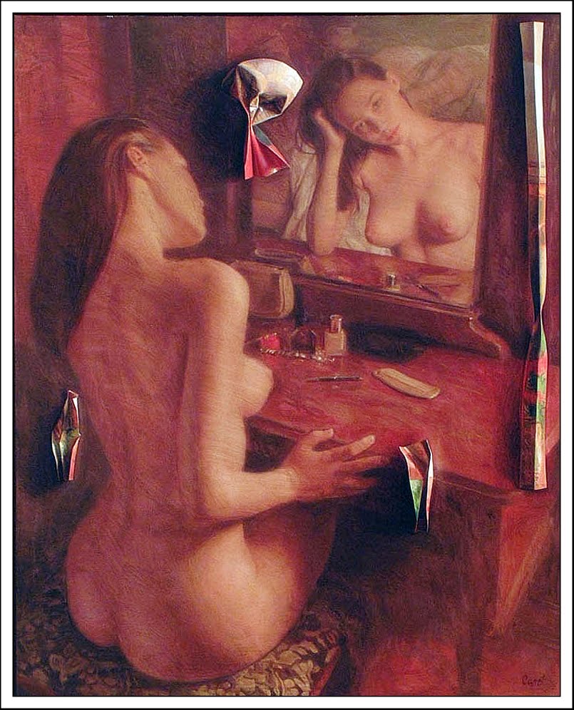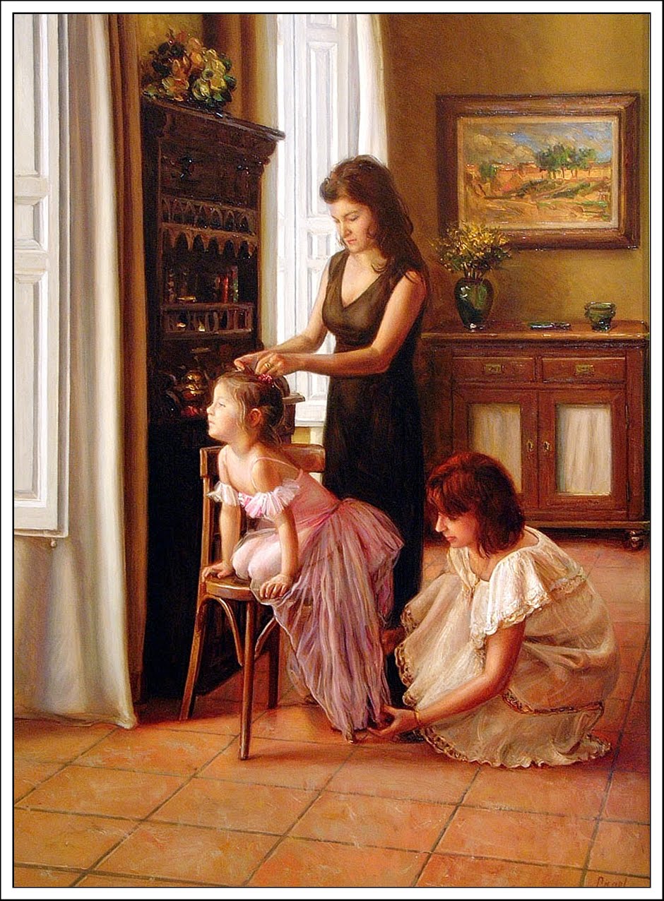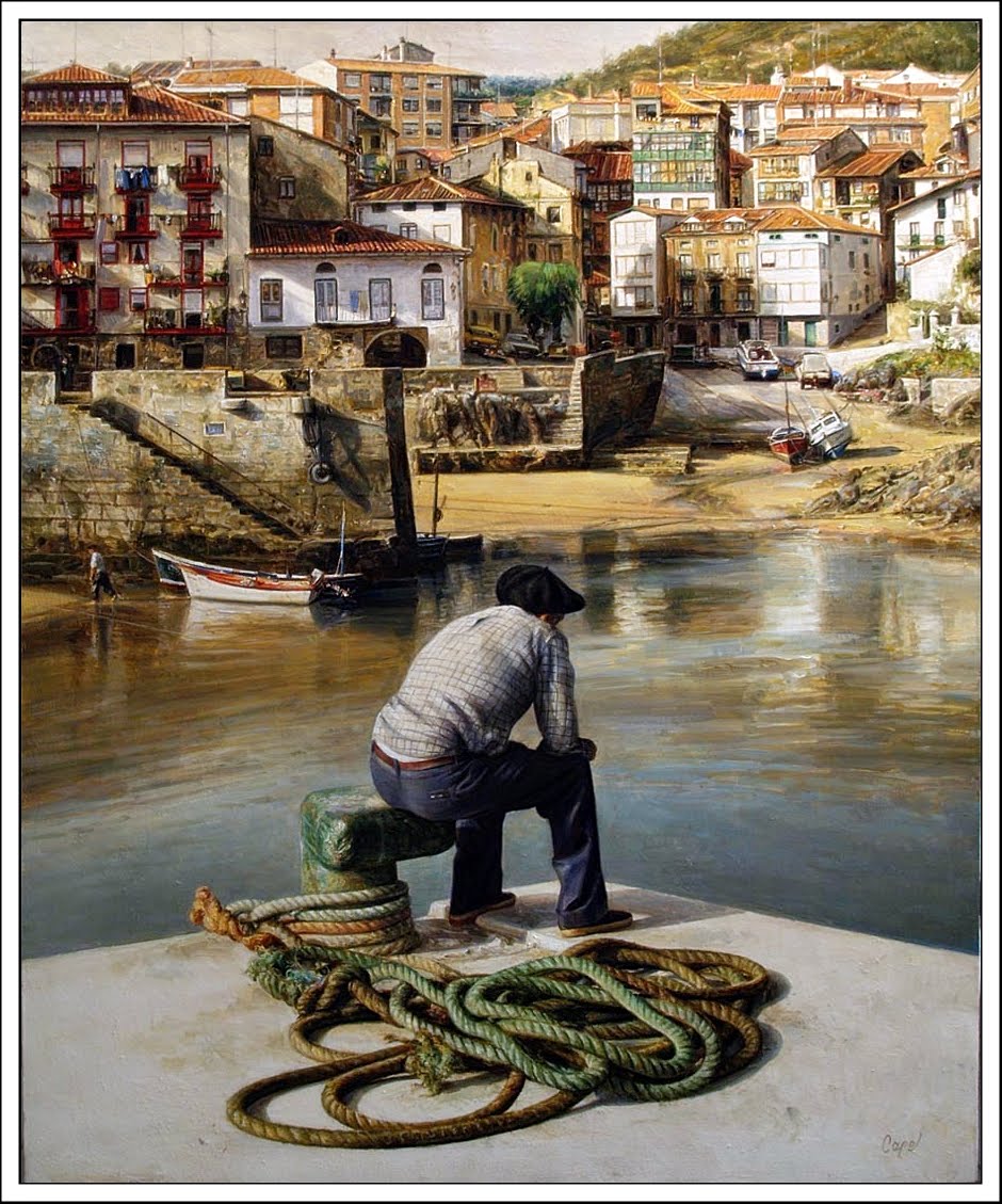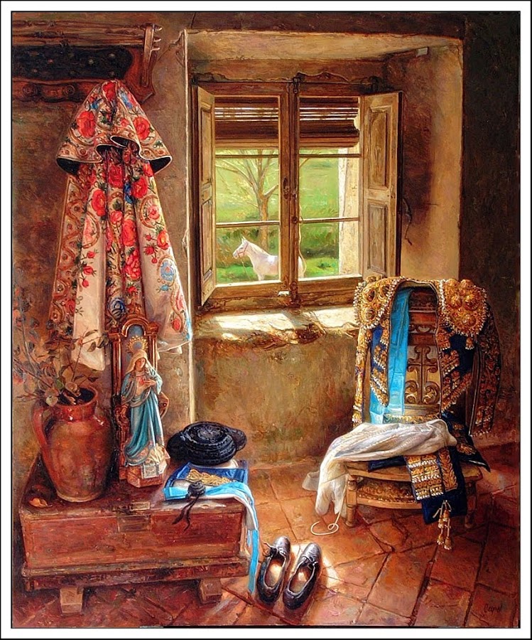 Pinta retratos, figura, temas taurinos , paisajes, escenas cotidianas ... donde se aprecia su admiración por Vermeer y Velazquez.