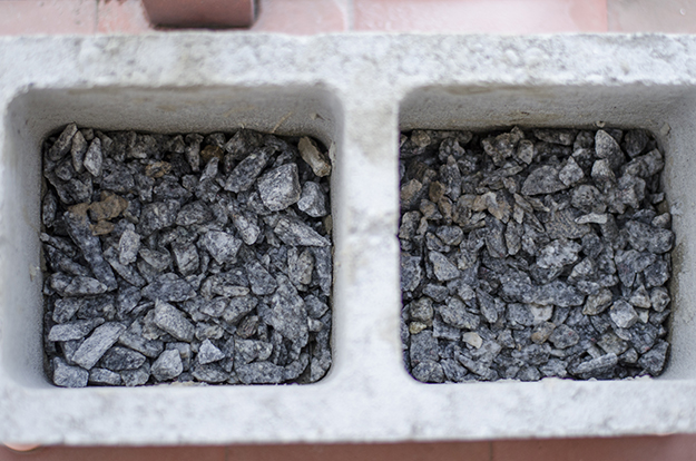 Se prepara la mezcla de cemento + arena + agua, y se vierte dentro del bloque. También pueden usar cemento rápido si les parece más fácil.