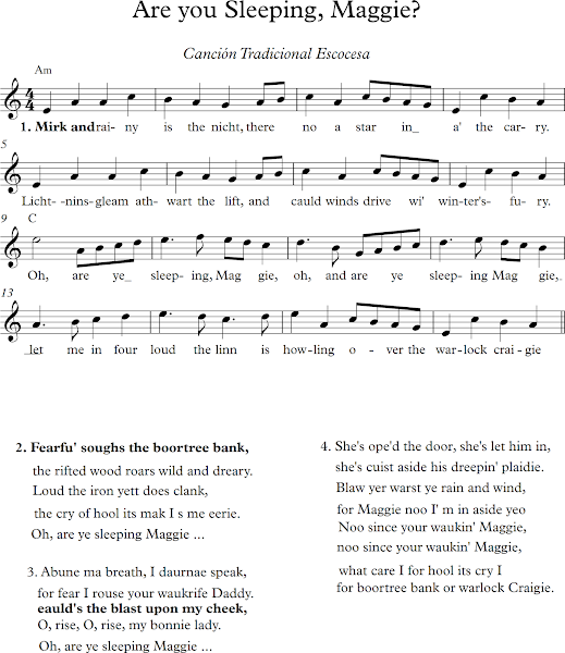 Are you Sleeping Maggie?. Partitura para flauta dulce. Canción Tradicional Escocesa. La tenemos que trabajar a partir de 4º de Primaria con los alumnos.