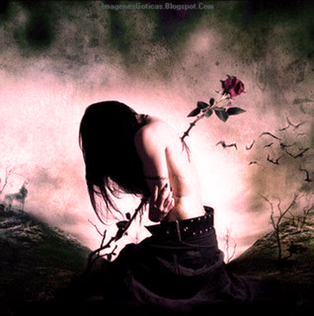 Bajo los rojos tonos del anochecer, su piel blanca iluminaba las raíces del viejo sauce,los cuervos llenan el aire con graznidos anunciando la tragedia. Largos cabellos del color de la noche caen por su rostro cubriendo lagrimas de despedida,arrodillada,con los brazos sobre su vientre, llora el vuelo de su alma hacia lo más eterno. Eterno como la promesa que la arrastró a lo más oscuro, al penar que causan las espinas de aquella rosa que en su día fue tan bella como su dueña,rosa que ahora es marchita, que no respira,que no camina.