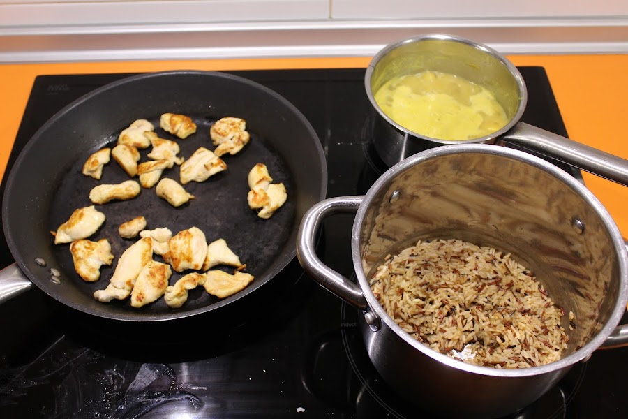 Lo primero que hago es cocer el arroz, que es lo que más tarda.