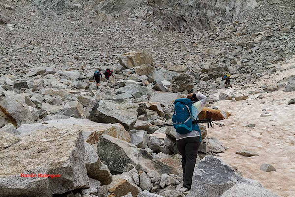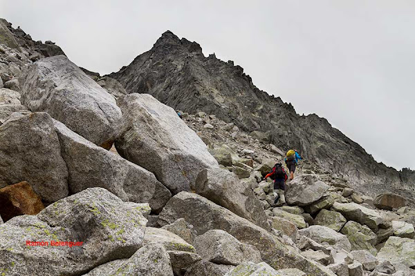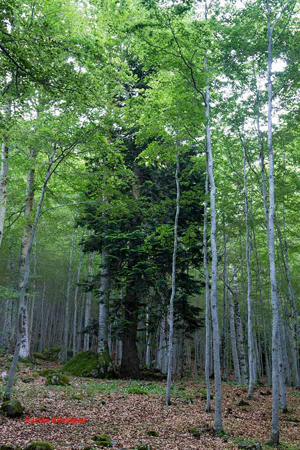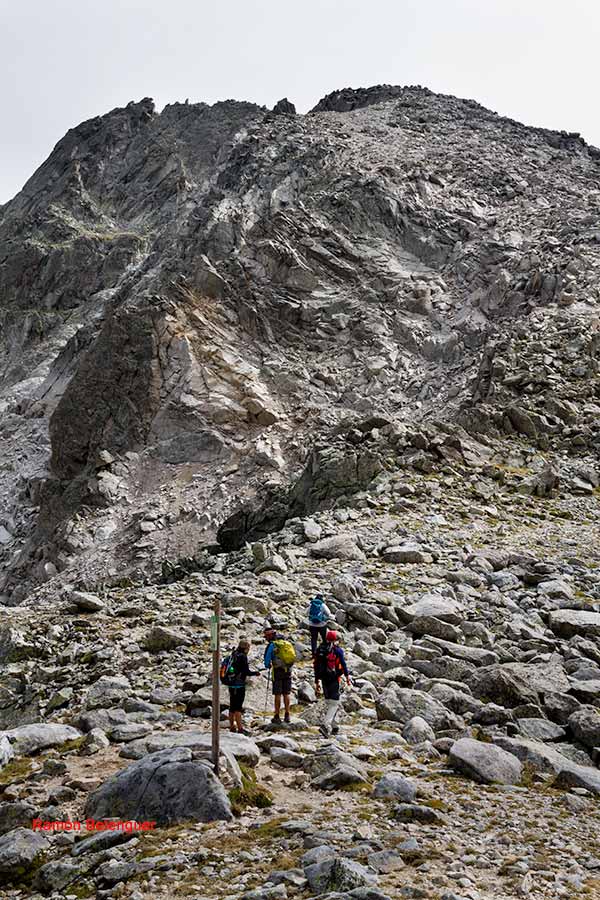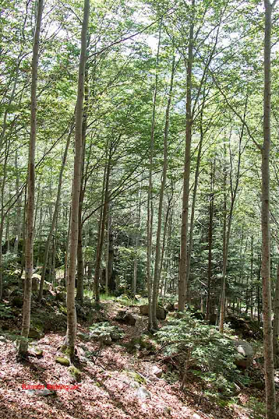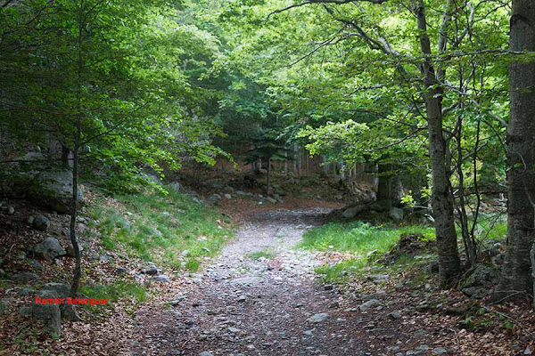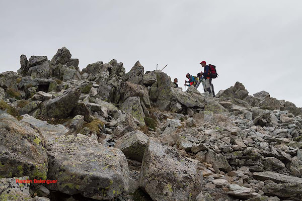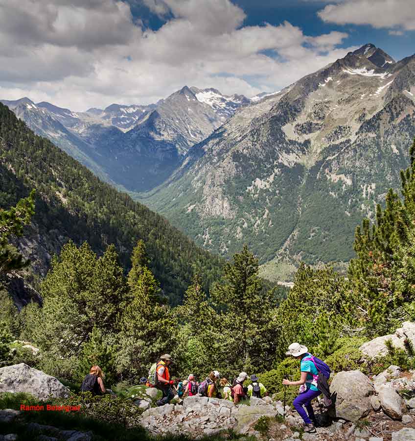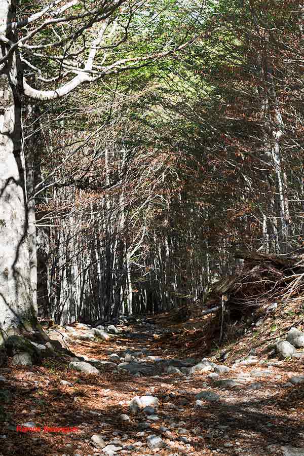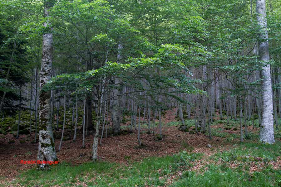empieza en el refugio de Conangle y al principio discurre por un hermoso bosque misto de abetos y hayas por el Valle de Besiberri, Estany de Besiberri, Refugio de Besiberri, Estanyety Coll de Abellers. En total son unos 1600 metros de desnivel acumulado. El paso más peligroso es la pedrera para acceder al collado d´Abellers (2885 mts) que separa el Besiberri sur del Abellers, se trata de una pedrera con un fuerte desnivel y mucha piedra pequeña suelta que produce fácilmente la caída de piedras, con lo que hay que estar muy atentos y no ir muy próximos ni en la misma perpendicular que el compañero, considero que habría que llevar casco. Una vez en el collado, a la derecha queda pico d´Abellersy a la izquierda nuestro objetivo. Para volver a la pedrera para bajar hay que fijarse bien y total la canal que sale desde el poste indicativo de Parque Nacional, pues si cogemos la que sale más a la derecha, cosa que hicimos, es mucho más peligrosa que por la que subimos. Personalmente recomiendo hacerla cuando este nevado, nos evitamos la pedrera de aproximación al pico que tan pesada la ruta.