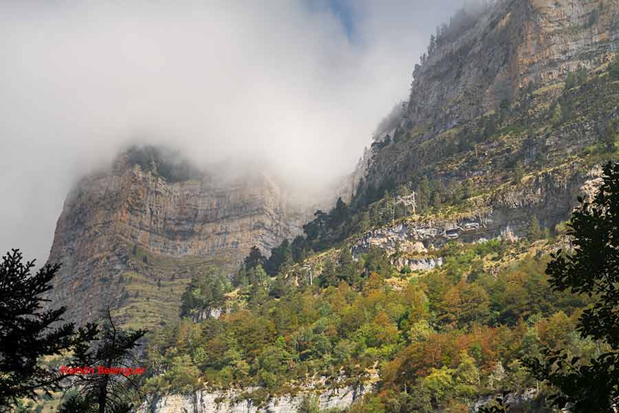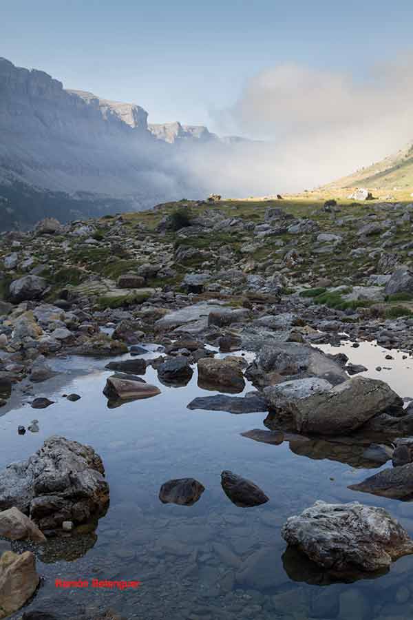 Cañon de Ordesa con niebla al amanecer del día de vuelta