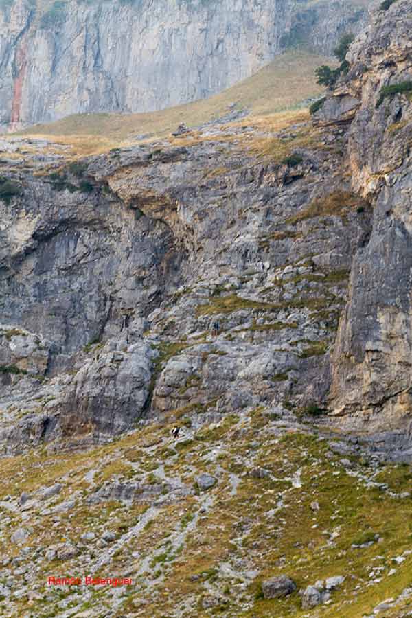La subida al refugio de Goriz la hacemos por el margen derecho del río Arazas hasta la cascada de Cola de Caballo, inicialmente discurre por un bosque de hayas. El camino está jalonado de numerosas cascadas. Tras las gradas de Soaso, salimos a los llanos y al circo de Soaso, al final del cual se encuentra escondida la cascada de Cola de Caballo o de Soaso, el agua proviene desde la zona del Barranco de Góriz, que después de varios kilómetros desemboca en una de las fisuras que forma el mismo barranco y se abre en las paredes de circo de Soaso danos lugar a la cascada. Pasado el puente de Soaso nos dirigimos a la zona de las Clavijas por donde ascenderemos camino del refugio de Goriz, el descenso en cambio lo haremos por el camino en zigzag, al ser la opción recomendable. Poco después de terminada la ascensión por las clavijas enlazamos con la otra senda, y salimos a una llanura desde donde tenemos podemos observar el Suroeste del Valle de Ordesa y el Circo de Góriz al norte
