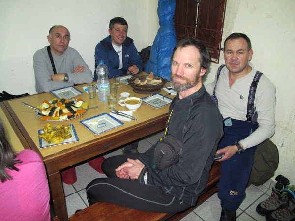 Con nuestro guía Hassan iniciamos el ascenso. El primer día nos esperaban cinco horas de subida hasta el refugio Neltner (3.207m). El ascenso no tiene mayor dificultad pero a nosotros nos empezó a nevar nada más salir de Imlil y el tiempo empeoró conforme ganábamos altura. El ascenso pasa por las aldeas de Aremd y Sidi Chamarouch y allí fue donde tuvimos que dejar parte de nuestro equipaje. El mulo de Hassan no pudo continuar por la nieve acumulada en un lugar llamado Piedra Blanca y a partir de ese punto nos tocó portear todo nuestro material. Cuando llegamos al refugio la ventisca era tan fuerte que no se veía a 20 metros. Gracias al GPS que nos indicó dónde estaba el camino pudimos llegar sin problema.