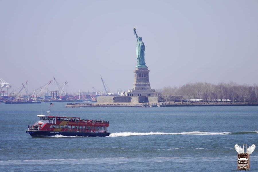 Tendréis unas bonitas vistas del Downtown de Nueva York, de New Jersey y de la Estatua, aunque si la queréis fotografiar, llevaros el teleobjetivo, ya que es muy pequeña y el ferry no pasa muy pegado.