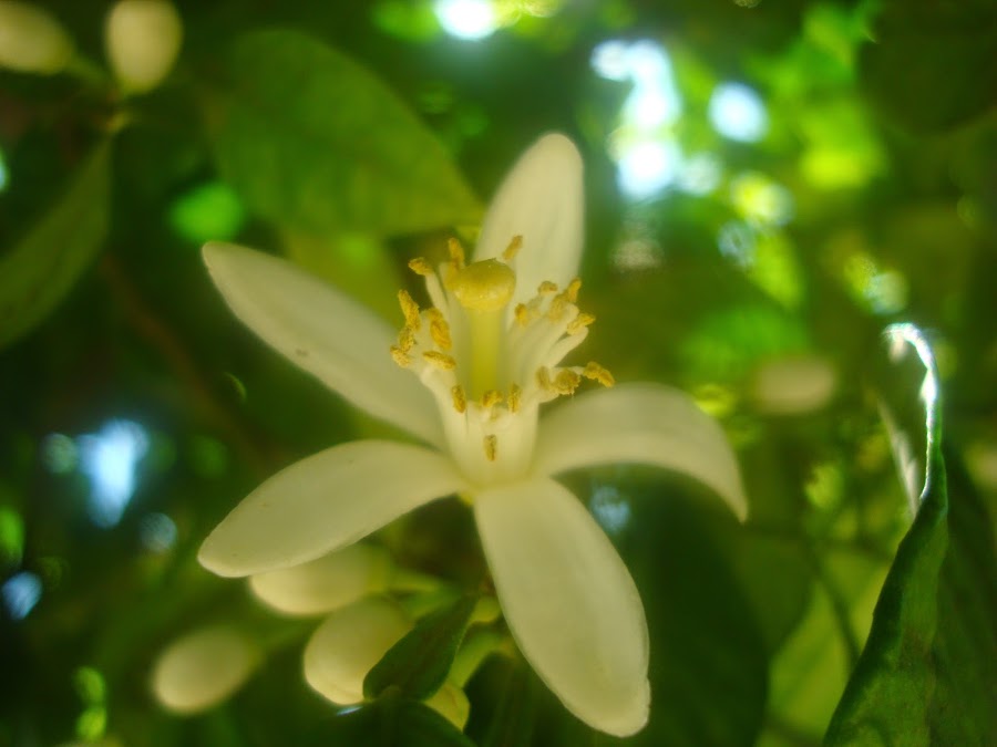 Cada mañana al salir,percibo por las calles de Jerez ese delicioso aroma a azahares;La llegada de esas pequeñas y hermosas florecillas que coronan tanto naranjos,como limoneros,dan paso a la Semana santa,y me anuncian la estacióndel año más alegre.Cierro los ojos,para ser transportada a la carrera oficial de tantas,y tantas hermandades,y,como no,de nuestra feria.Hay en los atardeceres ya frescos,un manto blanco que el aire arrastra a portales y calles.Empinarme para llegar a una de las ramas bajas y coger unas flores,es toda una tentación puesta al alcance de mis manos,que se impregnan de su perfume.La suavidad cual seda,me hacen juguetear entre los dedos con ellas,florecillas blancas nacaradas,que de nuevo,me regalan en esta estación fugaz,tanto,que culmina mis pensamientos,y despiertan mis cinco sentidos…….O son seis?