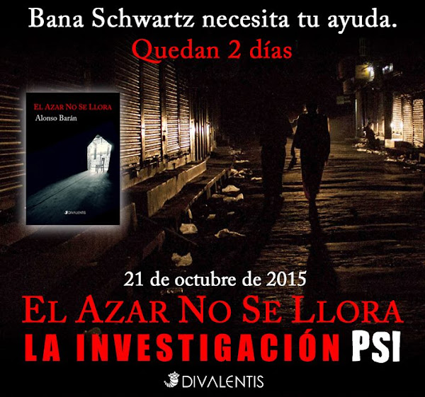 A punto de llegar…PSI is coming... Muy pronto Descubre en mi blog: La investigación PSI Un detective. Una ciudad. Un caso sin resolver. El 21 de octubre de 2015, atento a LA INVESTIGACIÓN PSI. Con la colaboración de Divalentis Editorial: http://www.divalentis.es/ y el autor Alonso Barán con el libro El azar no se llora