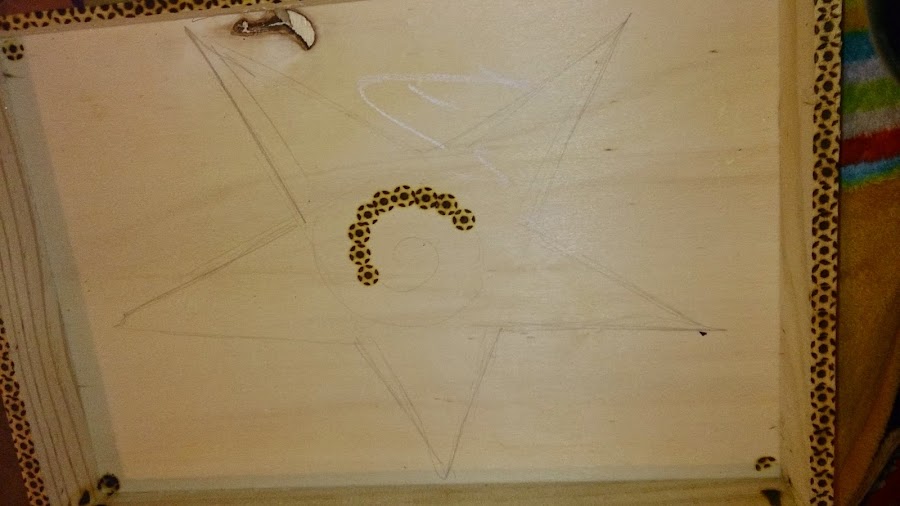 2º Ahora hay toca crear, imaginar, copiar una imagen o impresión que nos guste. Y hay que seguir el patrón con el pirógrafo.