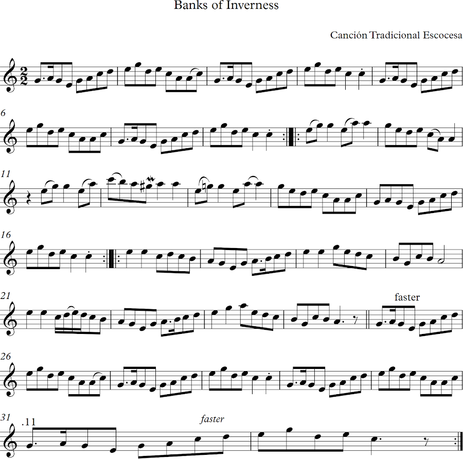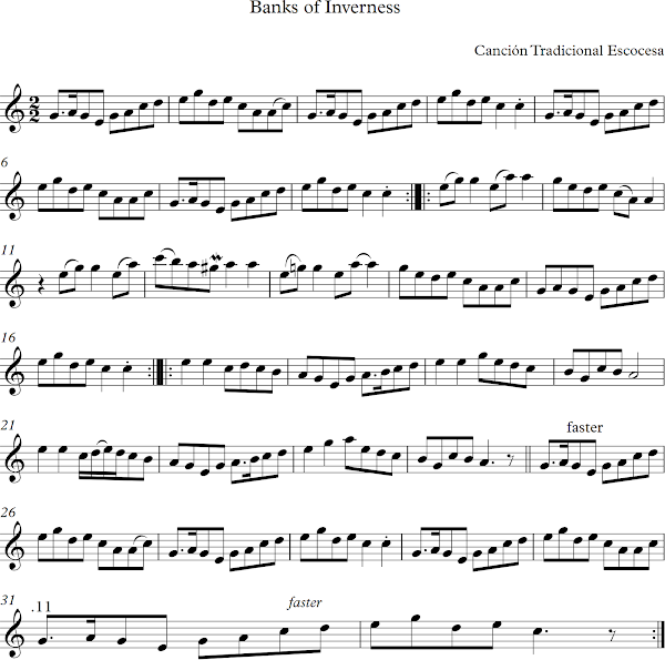 Bank of Inverness. Partitura para flauta dulce. Canción Tradicional Escocesa. Partitura que englobaremos dentro del nivel avanzado.