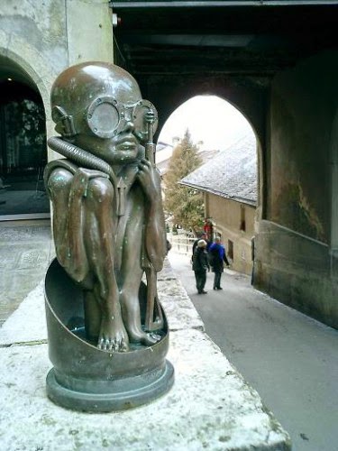 Existe un rincón con extrañas criaturas. Estuve por allí en 2003 (en sus comienzos), entrar en el Giger Bar es entrar en un mundo de esqueletos, calaveras.