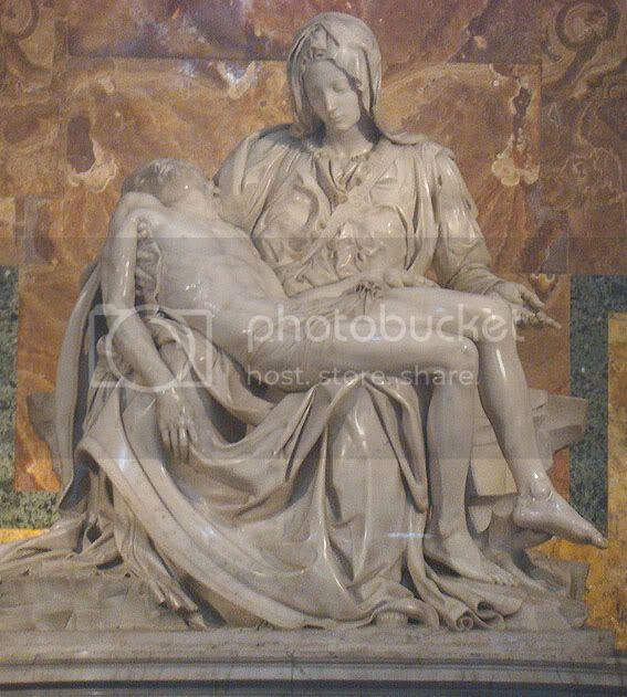 Ante la Piedad de Miguel Angelpies, observaremos como parece bendecirnos y mirarnos a los ojos.