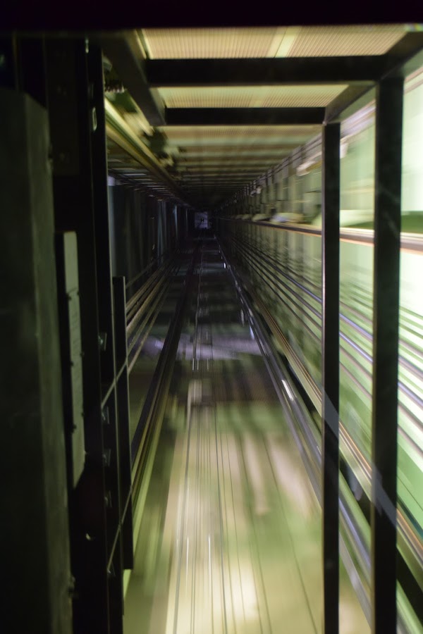 Llegado nuestro momento subimos hasta un piso superior donde de nuevo pasamos otro control de seguridad y nos espera el ultrarápido ascensor que en menos de 30 segundos nos pone en la plataforma.