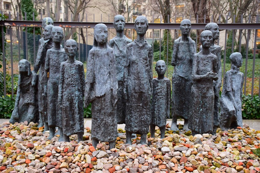 Recientemente, una escultura en la que se representan hombres, mujeres y niños, se ha colocado justo en la puerta de entrada al recinto, recordando precisamente a todos los deportados que fueron llevados en trenes, como si fueran ganados a su propia aniquilación. Las piedras cubren la base del monumento por una razón muy simple: los visitantes sean o no judíos dejan una piedra y no una flor porque justamente la piedra tiene la particularidad ser una creación muy antigua y de vida muy larga; podríamos llegar a decir que la piedra es "eterna" en cierto modo, esto refleja un poco la visión del judaísmo frente a la muerte. Cuando nosotros nos enfrentamos a la muerte sabemos que el alma sigue existiendo y lo único que se fue es el cuerpo, el alma es eterna. La flor tiene corta vida y rápidamente se marchita, demostrando justamente la fragilidad del cuerpo, mientras que la piedra representa la eternidad del alma.