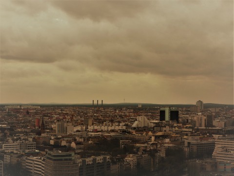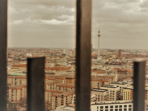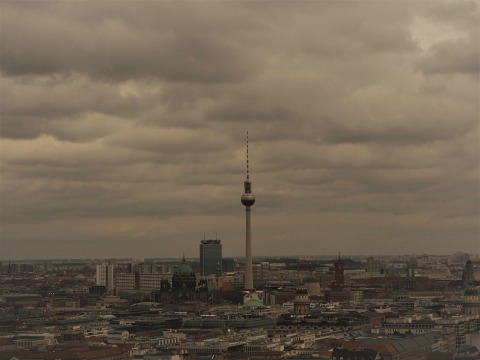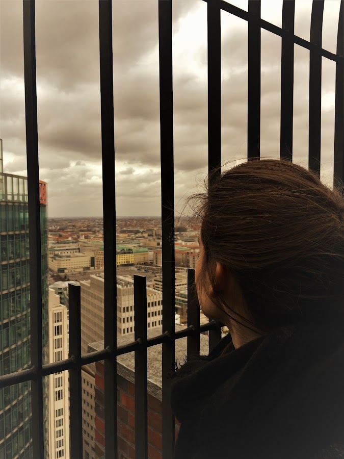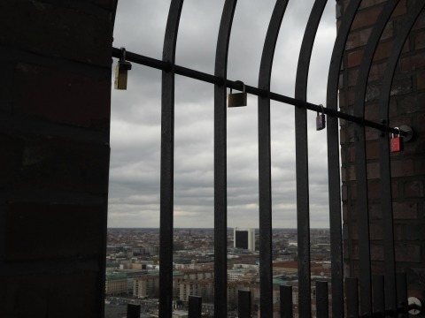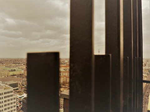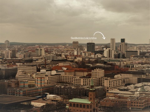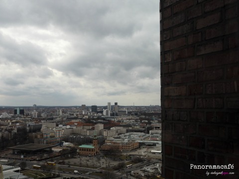 La entrada cuesta 7,5 y hay que pagarla sí o sí para acceder tanto a la cafetería como al mirador. Si puede ser, os recomiendo hacer la visita durante un día con buen tiempo y mucho mejor si ya es primavera. Pues me puedo imaginar, lo bonita que se ve la ciudad desde allí arriba cuando el cielo está azul y los árboles completamente verdes. Como habréis notado, yo no tuve mucha suerte con el tiempo. A pesar de que el día estaba bien soleado, justo cuando llegué allí se tornó lluvioso y gris. Sí, eso digo yo: ¡maldito tiempo berlinés! Intenté aprovechar lo que pude la visita, pero allí arriba hacía un aire tan frío que hacer las fotos era un auténtico sufrimiento. Una suerte poder disfrutar entre foto y foto de su cafetería, y así entrar en calor que buena falta me hacía...