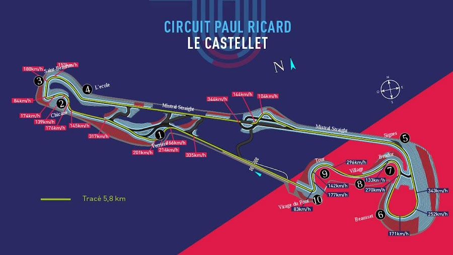 Algunos puntos sobresalientes en el circuito situado cerca de Marsella en el sur de Francia, incluyen: el Verrerie Esses y la curva del Camp se ampliará y una chicane dividirá el Mistral en dos secciones.