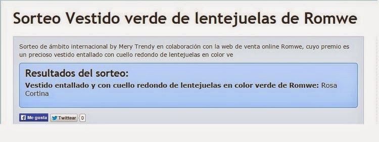 Por otra parte, os dejo el nombre de la ganadora del vestido verde de lentejuelas (véase el modelo de vestido que se sorteaba aquí),