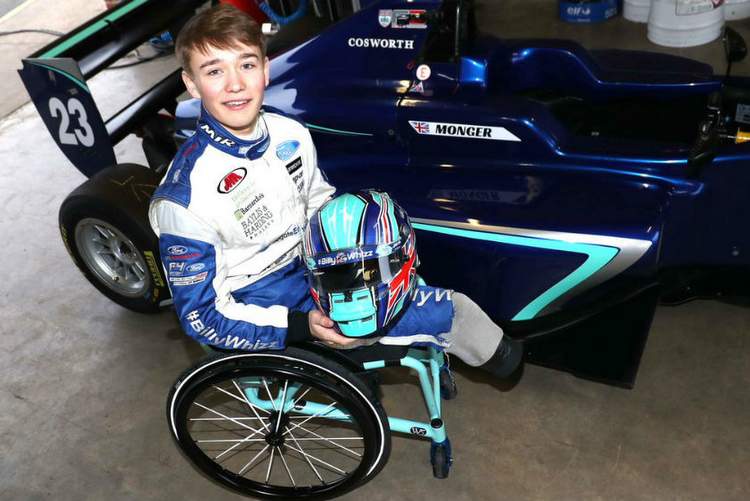 Monger perdió sus piernas después de un accidente de Fórmula 4 en Donington Park en abril pasado, con más de $ 1 millón recaudado para ayudarlo en su recuperación a través de una campaña de crowdfunding.