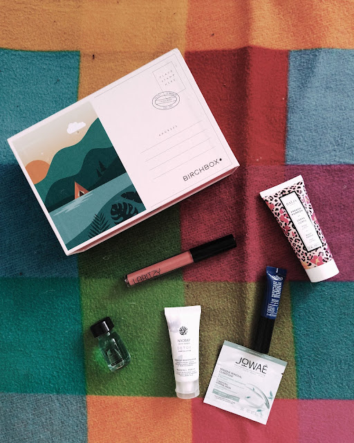 La cajita Birchbox de junio me gustó mucho. La caja es reversible, pero para la foto yo elegí el dibujo del camping pues me pareció súper apropiado para el verano de aventuras furgoneteras que nos espera. En cuanto al contenido, viene un labial de Laritzy, una marca que descubrí gracias a la caja y que me gustó mucho. Además del labial, también viene: