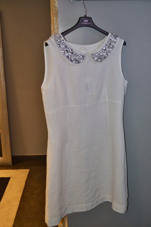 Tampoco se queda atrás este elegante vestido joya con cuello de bebé o "Peter Pan" bordado a mano en pedrería, que aporta un estilazo a la prenda increíble.
