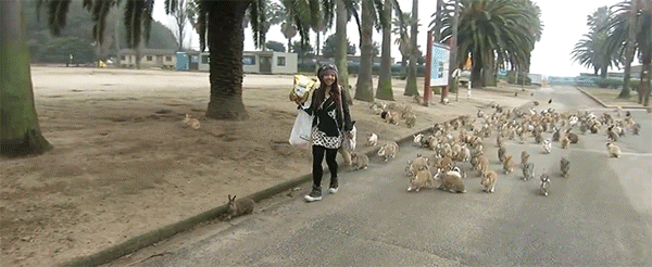Se dice que esta nueva generación de conejos existe en Okunoshima es porque en 1971 un grupo de escolares liberaron a ocho conejos en la isla. Pasó el tiempo y los conejos hicieron lo que mejor saben hacer, ahora la isla de 700 metros cuadrados, es el hogar de miles de animalitos de largas orejas, otorgándole a la isla el sobrenombre de "Usagi Shima" (Isla Conejo).