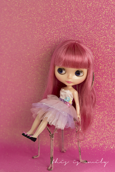 Esta vez se trata de la Blythe Snowflake Sonata, una pelirrosa preciosa. Su outfit podríamos decir que está entre princesa y bailarina. Como veis, ha llegado otra pelirrosa a la familia. Me encantan las muñecas con el pelo en tonos pastel.