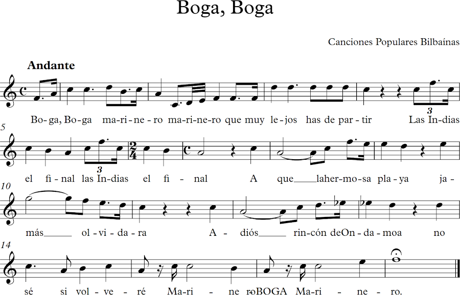 Boga, Boga. Partitura para flauta dulce. Canción Tradicional Bilbaína. La englobaremos dentro del nivel avanzado.