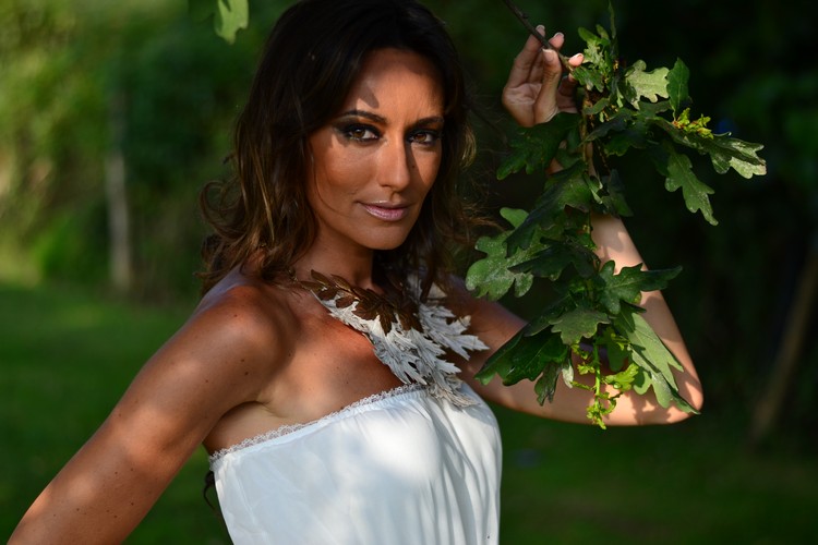 También me gustaría destacar el maxi collar en forma de hojas de dos colores, realizado de manera artesanal en piel de napa.