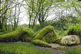 Así, de entre los árboles, parterres y arroyos, surge a la vista del paseante formas grotescas y caprichosas de aspecto terrible o absurdo, que representan personajes míticos y seres fantásticos.