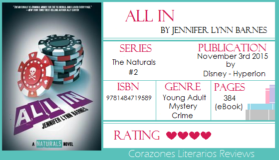In All In, the Naturals dont do cold cases anymore, finally they have green light to consult in current cases, and now they travel to Las Vegas where three murders have been committed at three different hotels in the city. Las Vegas is the hometown of Sloane, and she is not happy about returning to it, expressing it with her own awkward and kleptomaniac way. Just because we need a deadly turn of events the murders hit too close to home and the Naturals will do anything to keep safe those their care about.