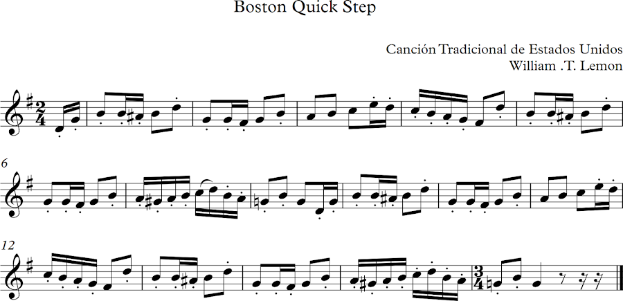 Boston Quick Step. Partitura para flauta dulce. Canción Tradicional de Estados Unidos. La englobaremos dentro del nivel avanzado.