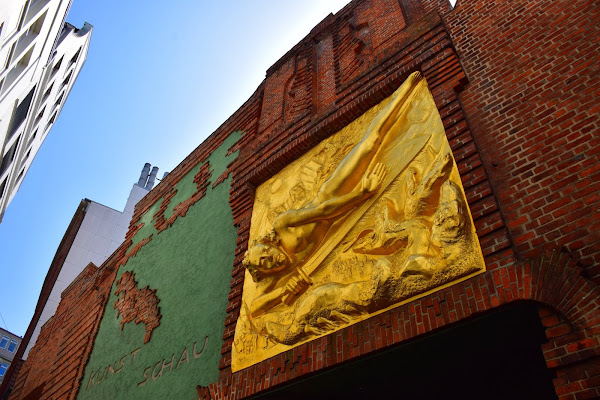 Como anticipo de la exquisita calle que vamos a visitar, el relieve dorado Lichtbringer (El portador de luz) nos permite entrar a un rincón poco conocido de la ciudad y que se levantó entre 1922 y 1931 gracias a un industrial y mecenas que pretendía simbolizar el renacer de Alemania tras la Primera Guerra Mundial.