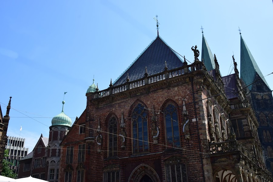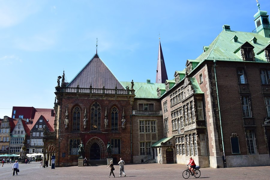 Es innegable que la plaza es una obra de arte arquitectónica, que se desarrolló en el más importante lugar de comercio del norte de Alemania a principios de la Edad Media y con la edificación del ayuntamiento, la función de mercado se vio aumentada a la categoría de administrativa, ya que el gobernador de la ciudad juzgaba y condenaba a los reos desde el balcón del edificio. El ayuntamiento, que tiene más de 600 años, fue construido en estilo renacentista con gran influencia holandesa, para albergar los órganos de gobierno de la ciudad. Adornada con 8 esculturas monumentales que representan a Carlomagno y a los 7 príncipes electores, simbolizan la decisión de Bremen de ser independientes del gobierno de la iglesia.