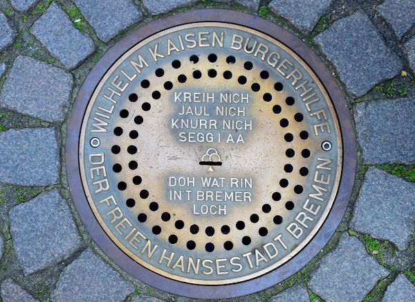 Antes de dejar la plaza, vamos mirando al suelo y buscando una especie de tapa de alcantarilla mientras nos dirigimos a la Catedral. Es el Agujero de Bremen, donde debemos dejar caer una moneda en una ranura para oír los cantos de los Músicos de Bremen. La recaudación va íntegramente a causas benéficas.