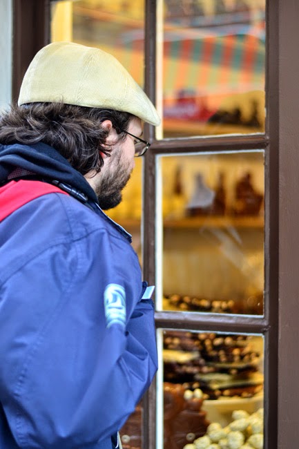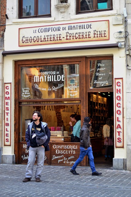 Desayunamos un gofre en una trampa para turistas del Groentenmarkt de Bruselas que no merece mencionarlo más que para que no vayas, llamado la Gaufre de Bruxelles. No merecía la pena ni el chocolate ni el gofre, y para colmo me pedí un chocolate caliente de bebida... a la legua se notaba que estaba reconstituido con agua, que era de polvos :S