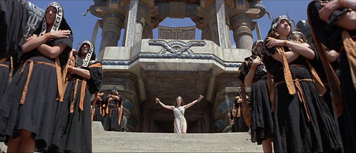 Una marcha majestuosa acompaña al primer tema que en pantalla nos muestra a la procesión de los pelegrinos hacia la montaña de Poder para honrar a su líder ( Thulsa Doom) .