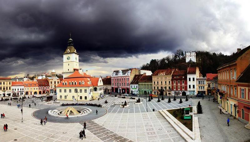 Ciudad de la región de Transilvania rodeada de los montes Cárpatos. Es famosa por sus muros y bastiones sajones de la época medieval, destaca su Iglesia Negra de estilo gótico, la piata sfatului en el centro de la ciudad rodeada de edificios barrocos de colores y en la que se encuentra la Casa Sfatului, antiguo ayuntamiento transformado hoy en día en un Museo de historia local.